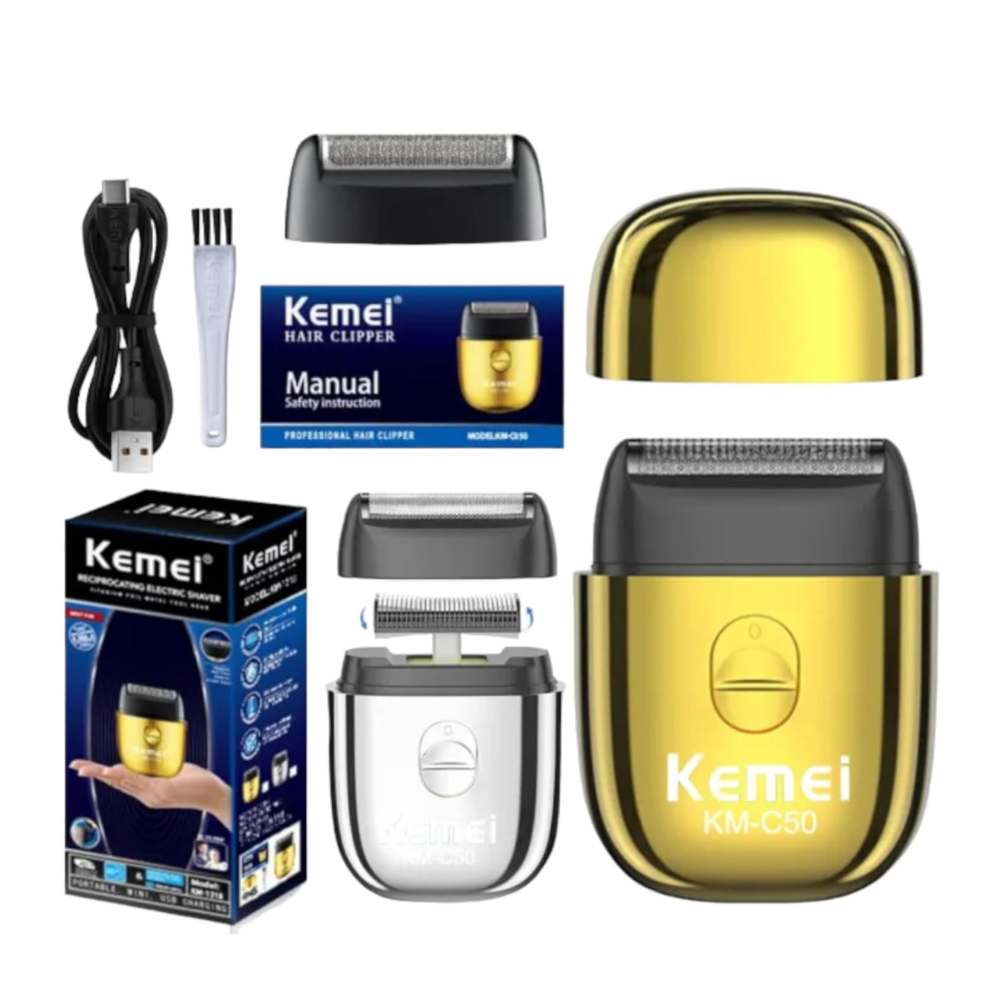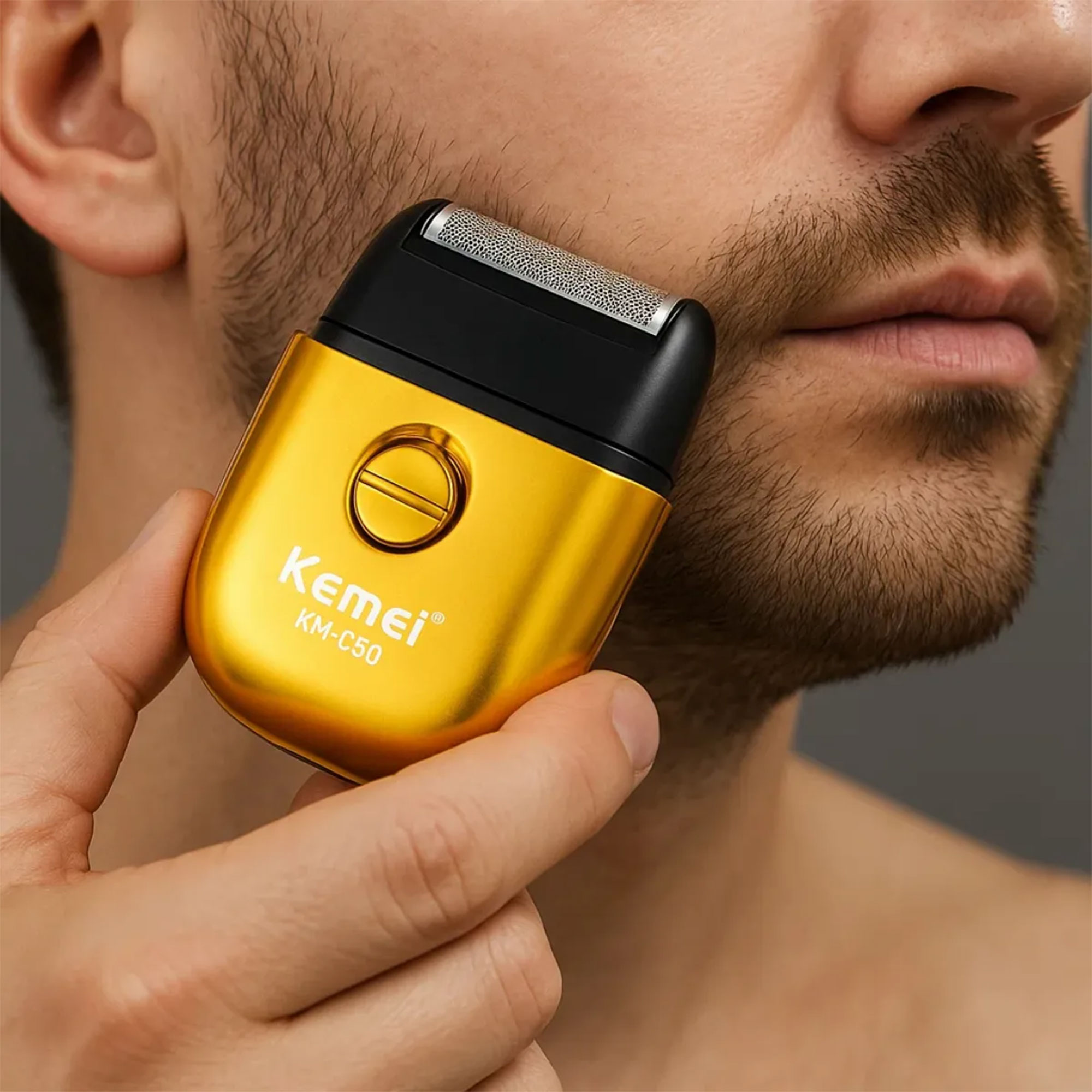 ماكينة حلاقة كهربائية KM-C50 صغيرة محمولة بثلاث شفرات، شحن سريع، بطارية تدوم، ومشذب للأنف والأذن لاستخدام يومي أو السفر.